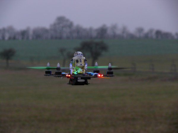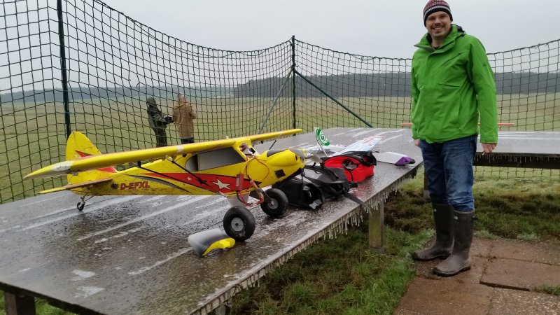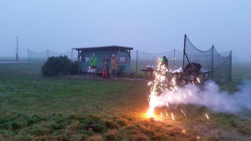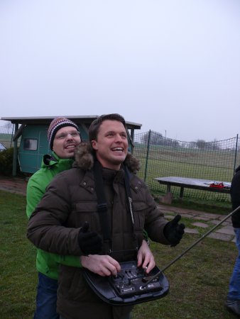 R2D2, der kleine Droide aus Star Wars, war zu besuch. Frank, vom Kisspark Freizeitpark Bad Kissingen, versuchte sich im für ihn verdrehten Modus am Steuer eines Modells und hatte sichtbar Spaß. Alex will wieder mit dem Modellfliegen anfangen. So schafften wir es am 1.1.2016 gemeinsam seinen Easy-Glider trotz dichten Nebels das erste mal in die Luft zu schicken und sicher wieder zu landen. So kann das Jahr weiter gehen.